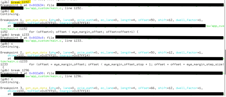 6) TERMINAL#2: You may now begin debugging using standard GDB commands.