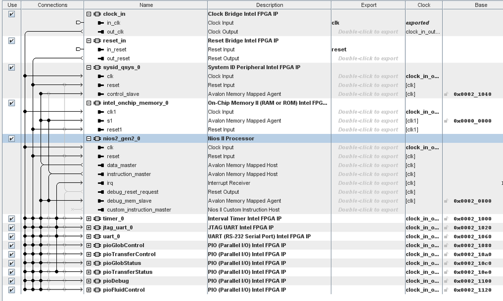 Aaargh, this is so frustrating! Your screenshot doesn't show what reset is connected to. At the top level I've connected mine to the development board fpga_resetn signal but as per my other forum thread I can't get an explanation of its functionality, see https://community.intel.com/t5/FPGA-SoC-And-CPLD-Boards-And/Cyclone-10-GX-dev-kit-which-signal-can-I-use-to-reset-a-NIOS/m-p/1539825#M26240 (BTW I can't post replies to this thread, another source of complete frustration)