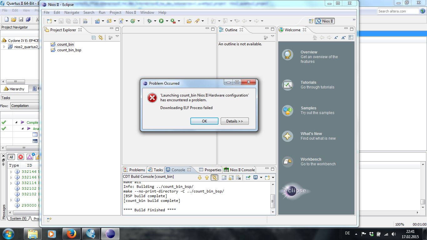 Hello, i'm trying to execute the "embedded_lab10_part3" example in de2-115 board but when i'm trying to download the .elf file to the board an error is occured. A message " Downloading ELF Process failed " appears. If someone has any idea about what is going wrong please inform me.