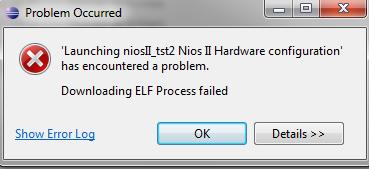error before download in NIOSII