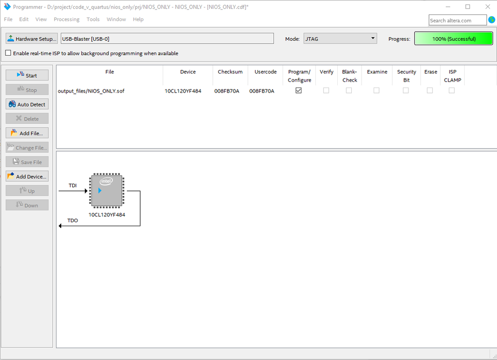 I am now able to program sof to FPGA via Quartus-->Tools-->Programmer.