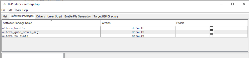 With a Quartus 21.1 install and the accompanying NIOS II Software Build Tools for Eclipse I've searched through the BSP Editor UI and can't this setting at all. Also, when I generate the Eclipse BSP from my sopcinfo file, there are no HAL driver files generated for the GSFI.