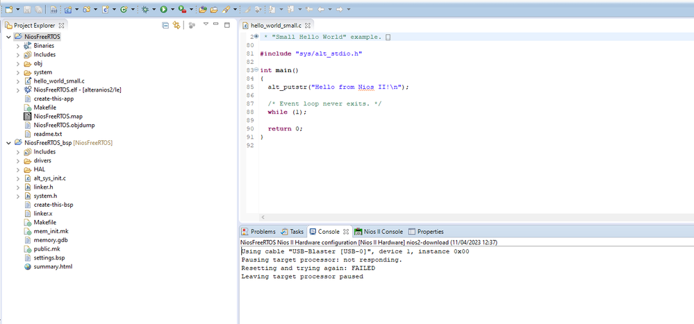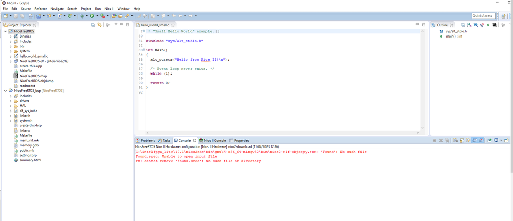 I downloaded the Nios 2 and started the project on Eclipse, it compiles and runs.