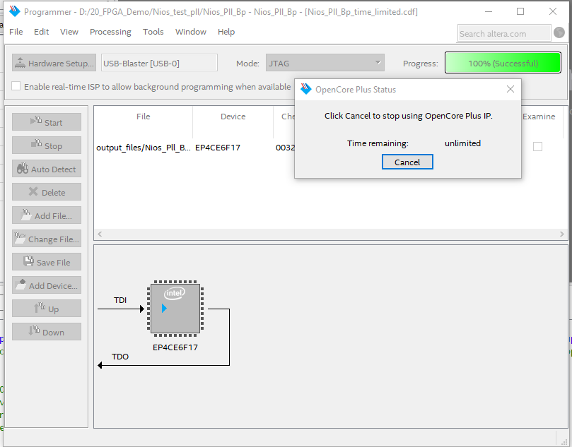 I am using the USB blaster to download my SOC Nios ii, Quartus (Quartus Prime 17.1) Lite Edition, windows 10, Cyclone iv FPGA EP4CE6F17C8.