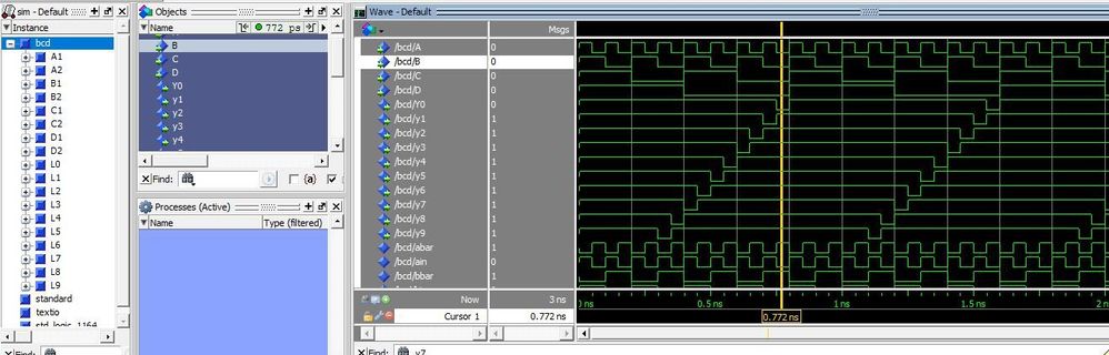 I want to design bcd to decimal decoder using structural style. I did it successfully but the problem when I simulate it in Modelsim it does not meet with the truth table.
