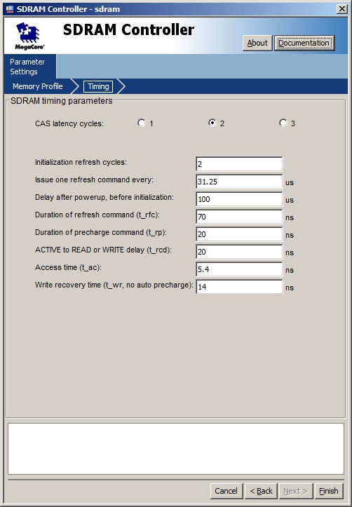 I have a problem in my nios II simulation. I have used the avalon memory-mapped master template for writting into a sdram memory. When I simulate the component and the master_write signal is asserted, the master_waitrequest signal reminds in a high level for 143350 ns, which is too long time.... I have upload the sdram parameters. Anyone can help me to solve this problem? Many thanks.