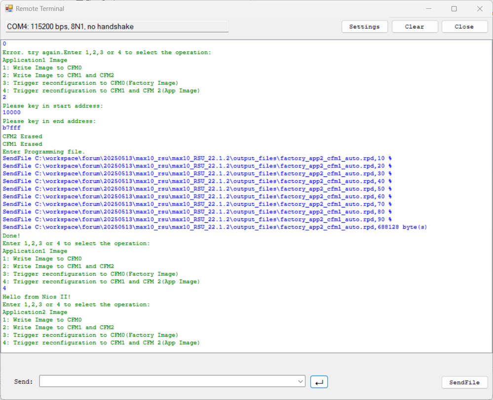hii i have progressed with the example of doing max10 rsu over uart with nios