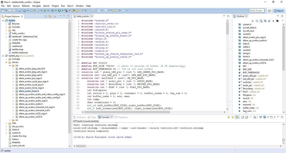 I have used nios2_system.sopcinfo file from project and created a new eclipse project with name testlite and successfully generated elf without any error.