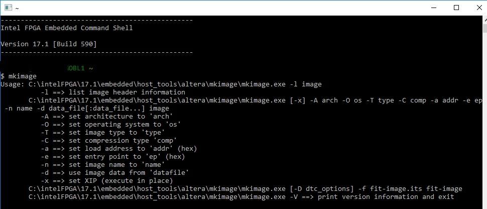 $ mkimage -A arm -T firmware -C none -O u-boot -a 0 -e 0 -n "RBF" -d output_files/ghrd_10as066n2.core.rbf ghrd_10as066n