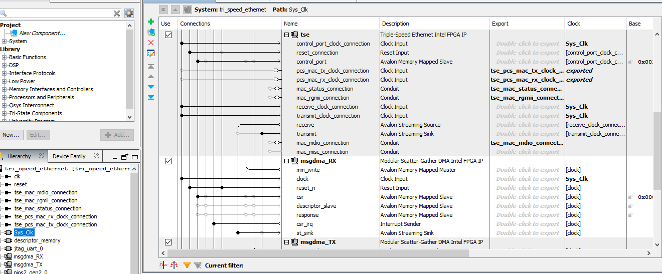i am working with tri speed ethernet ,i upgraded from SGDMA-implementation to using mSGDMA.but ,i am getting some errors .could anyone help me to resolve the issue , i am sharing connection image of my qsys platform designer with with mSGDMA and tse ip . i have structed with issue from couple of days .could any one share any document using trispeed ethernet using msgdma. please do not tell version upgrade.
