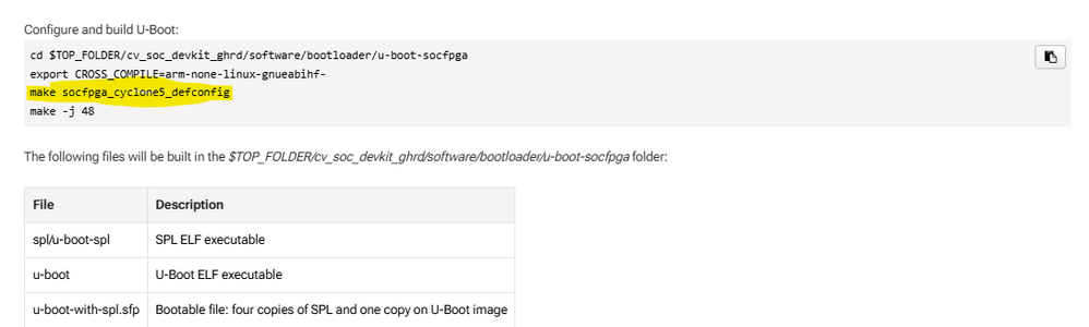 2. To build the uboot, you need to specify which board you're building (highlighted in yellow) . I saw that you already have the uboot build, do you have other files specified in the guide
