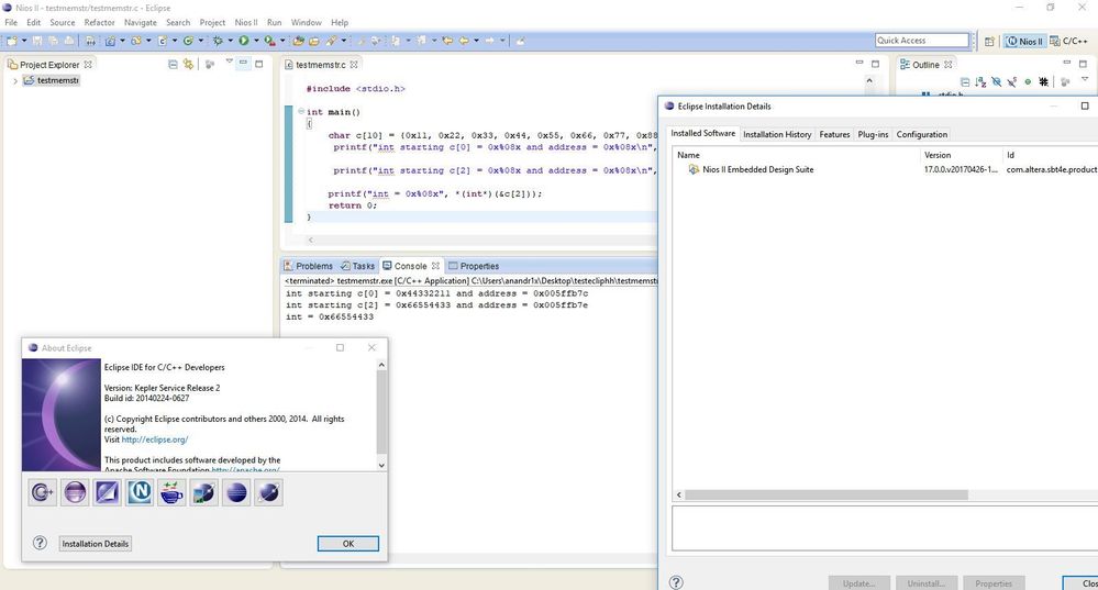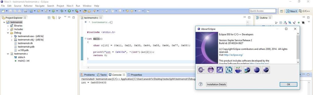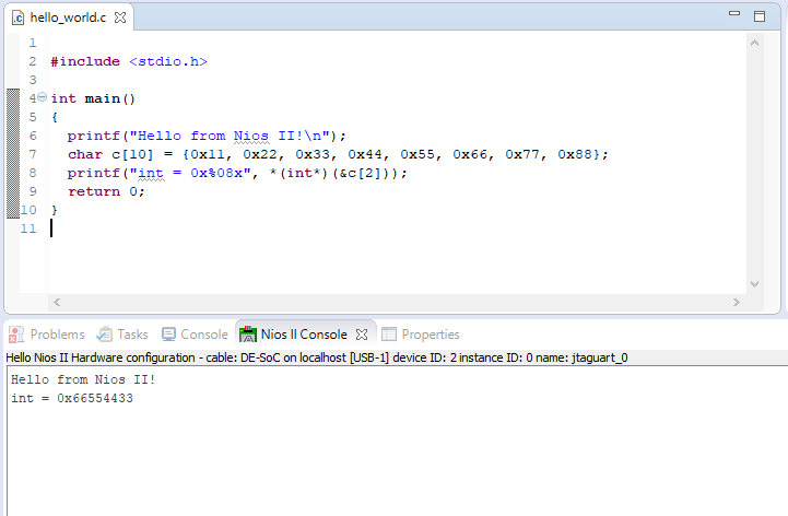 - Using Nios-II with eclipse. While accessing integer(32 bit) form non word align location getting incorrect value as described in below example.