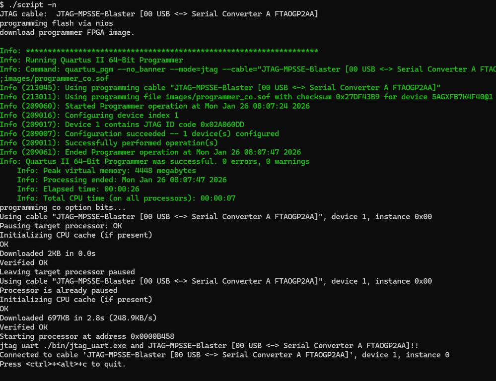 I still have some starting problems with NIOS. It seems to be some bootloader issue at this point. I found that using a hex file from another NIOS project to init the NIOS dedicated OC RAM improves the situation.