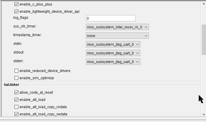 We are using Quartus 25.1 Standard. I came across something, which I would consider a but in the BSP generated HAL files, or at least a major limitation in the usage of NIOS V.