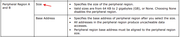 - 0x0 to 0x7FFF_FFFF in 2GB Peripheral Region A will NOT bypass cache. 2GB Size is bugged.