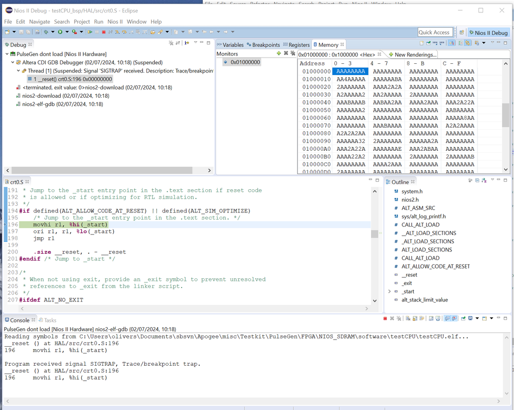 Lets try attaching the debugger and see whether the bootloader is copying the code to the emif.