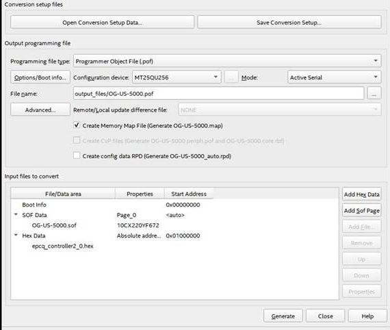 Quartus Pro 19.2 + C 10 GX + MT25QU256