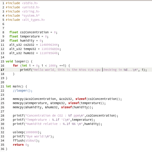printf("Concentration de CO2 : %f ppm\n",co2Concentration);