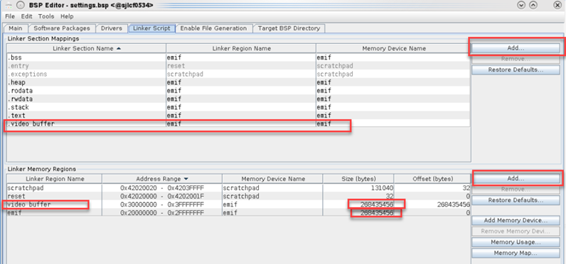 This buffer have to locate in the DDR memory. I created a new linker section for that with following settings: