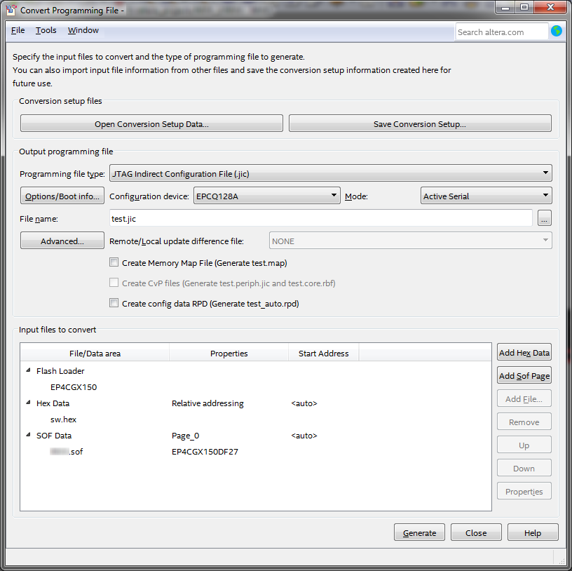 #! /bin/sh # $1 - Path to *.sof # $2 - Path to *.elf sof2flash --input $1 --output hw.flash --epcq128 --verbose elf2flash --input $2 --output sw.flash --epcs -A hw.flash --verbose nios2-elf-objcopy -I srec -O ihex sw.flash sw.hex