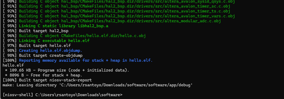 1) In a CMD window enter into the niosv shell: C:\intelFPGA_pro\23.4\niosv\bin\niosv-shell.exe