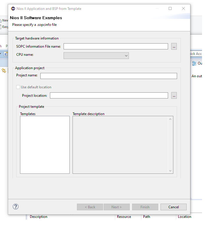 The BSP for this template is based on the Altera HAL operating system. To use a BSP based on a different