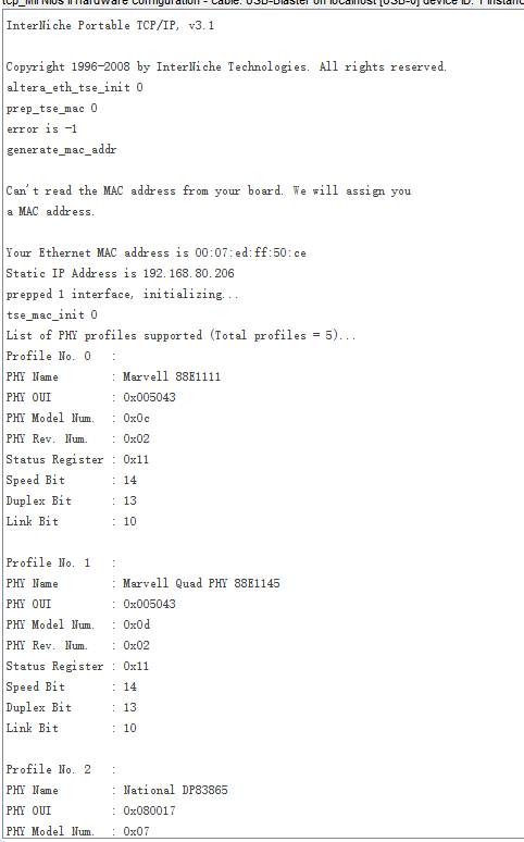 It's very strange that all the printing did not cause any errors, but the ping was not working. However, the Quartus13.1 project is pinging and working