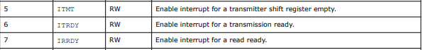 May be you can try to access these uart core control register bits for interrupt. Can refer to this manual (page 145).