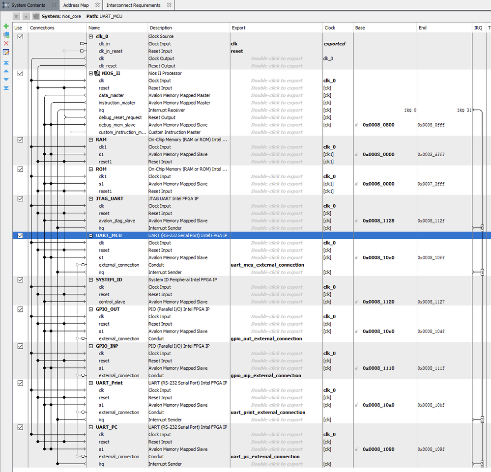 I add 3 UART for NIOS in Platform Designer. please see the following picture.
