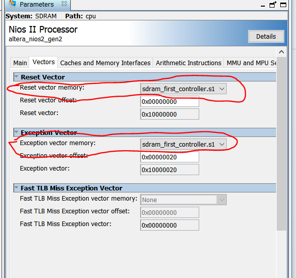 I manage to perform full write and read (that now in remark…) operation to the SDRAM for the first about ~144 cycles (Attaché 1). When I'm, trying to fill the memory with more data (running counter "i",let's say 255 cycles), the code is stuck- no printf messages in the UART_JTAG "NIOS II Console" and NIOS II break point at "alt_instruction_exception_entry.c" line 152 (as shown in Attaché 2)