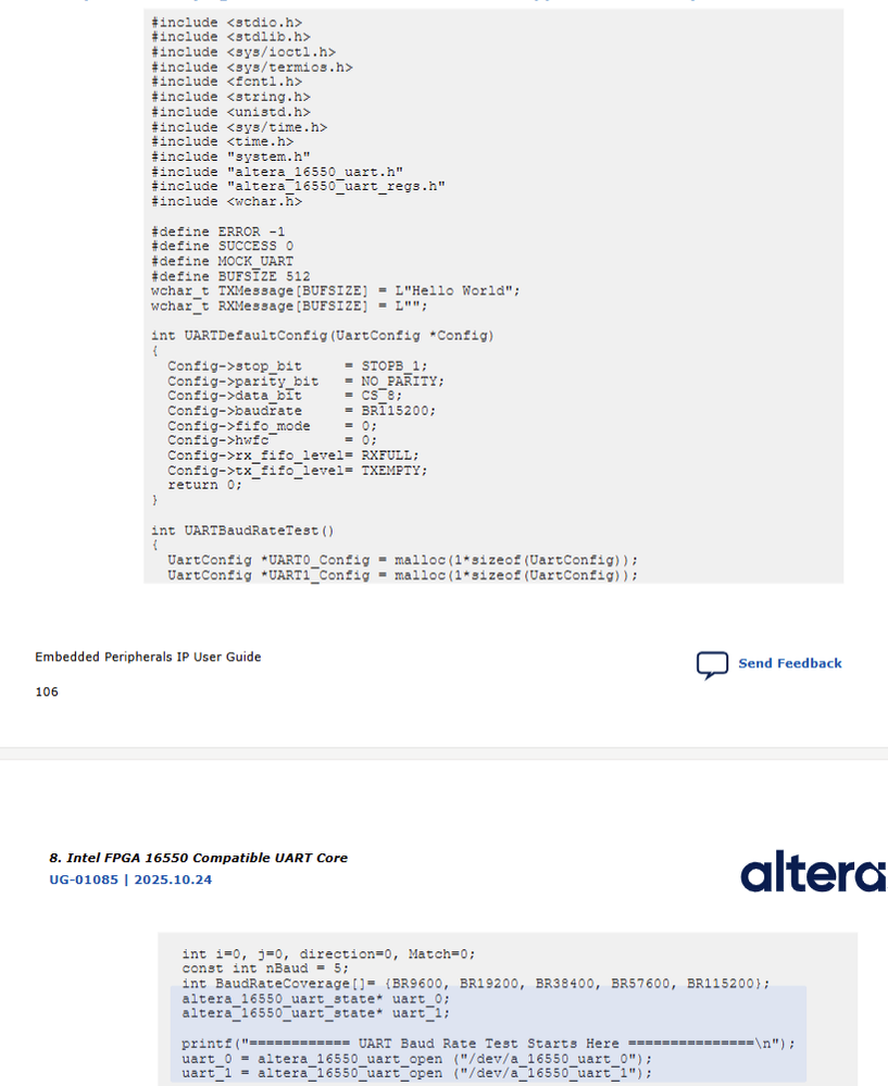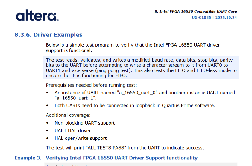Hi I am following the example of the 16550 Compatible UART in the Embedded peripherals IP User Guide and using the provided code I am not seeing any data in the loopback configuration.