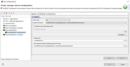 Hi all, I've been having trouble running my Eclipse systems as Nios II ModelSim. Running as Nios II hardware is okay for me. I am using the same .elf file that was working with the hardware simulatio...
