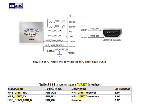Hello, I am trying to do Uart Communication on the DE1 nanosoc board, but the pins to assign the Uart say unassignable on Quartus according to the instruction manual: Cyclone® V SE 5CSEMA4U23C6N de...