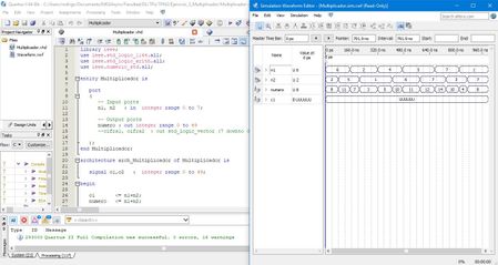 Buenas tardes, estoy intentando implementar un multiplicador de palabra en Quartus II 13.0 sp1, cuando le doy un valor (dado por una operacion de multiplicacion) a una salida, la muestra bien, pero s...