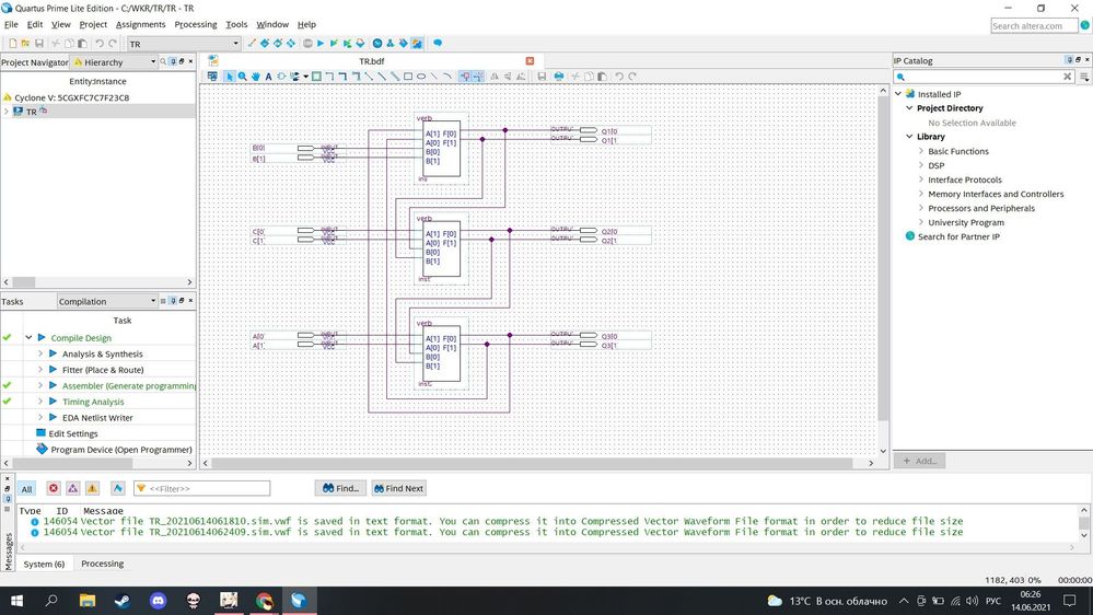 I also swapped ports A[0] and A[1] in the verb.bdf, so that could be it. Successful simulation can be found in waveform7. Note that I changed the file path name to mine in the Simulation Settings.