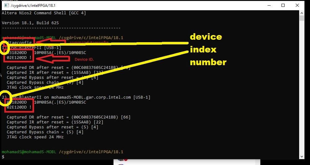 May you can try command "jtagconfig" first to understand more details about device index.