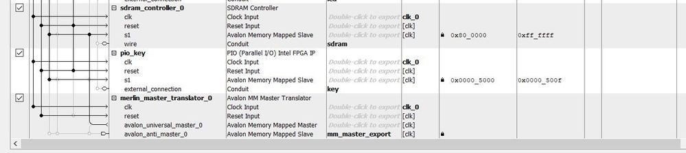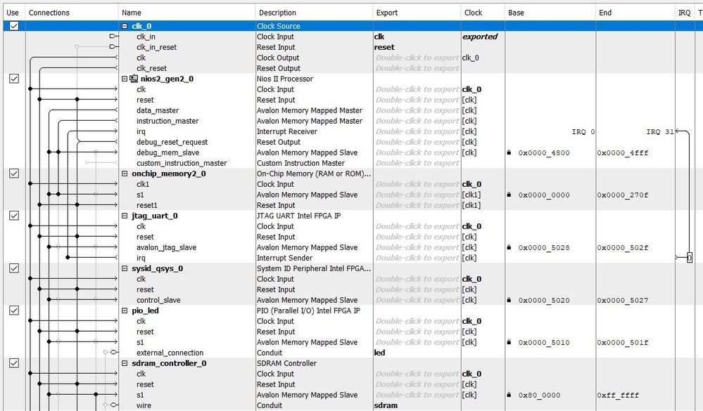 2. A Platform Designer system, mainly connecting the Nios II processor with the SDRAM Controller IP and an Avalon-MM interface (the Avalon MM Master Translator IP).