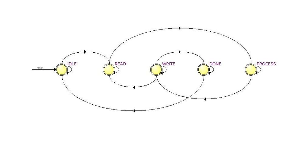 3. I have connected 1 & 2 in a Verilog top-level module through module instantiation. In order to establish the data streaming between custom module in part 1 and SDRAM controller in part 2, I have connected the SDRAM controller as the Avalon-MM slave and exported the Avalon-MM master port to be connected to my customized module. In the module, I have designed an FSM to manage the read, process and write to the Avalon interface.