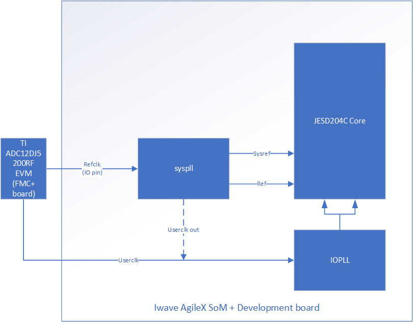Dotted line is the configuration in the project above resulting in the error, solid line for userclk (reference to IOPLL) from another FPGA pin works fine: