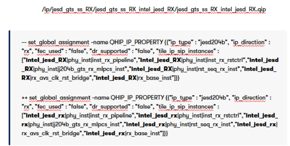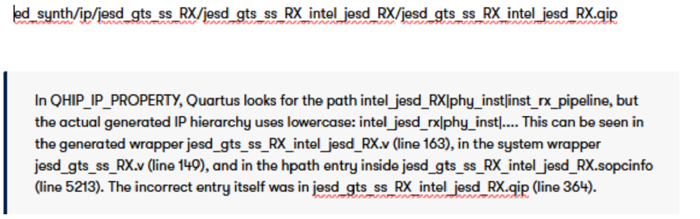 The problem is that after updating the Qsys file, it gets changed back to intel_jesd_RX, and HSSI reports the critical error again.