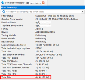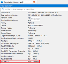 Here is an excerpt of the error message: PLL / Total number of IO PLLs and FBR PLLs is 6, which exceeds the maximum allowed value of 4.