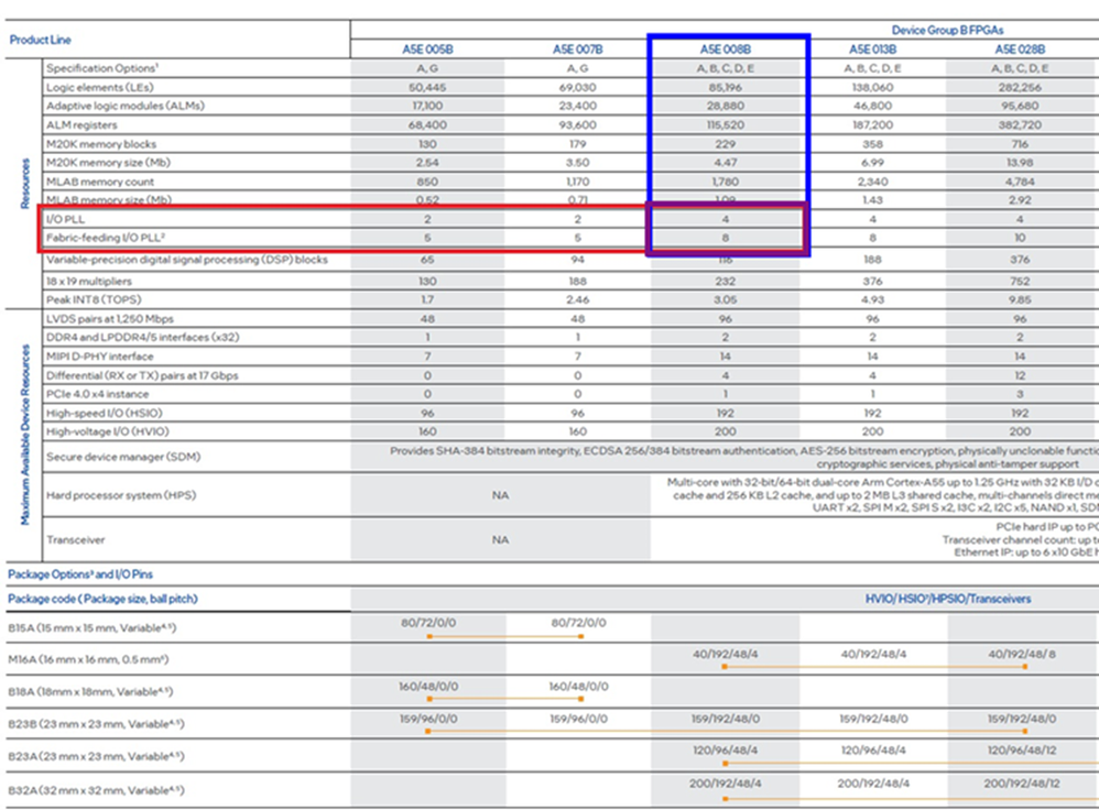 * The product catalog contains the following note: The fabric-feeding IOPLL count inclusive of system PLL at transceiver bank, the System PLL can be repurposed for core fabric usage if not used for transceiver.