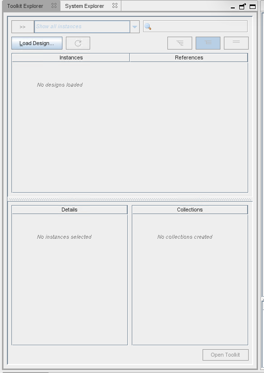 When opening the system console, I can see the instances in the System Explorer tab, but not in the Toolkit Explorer (I loaded the sof file).