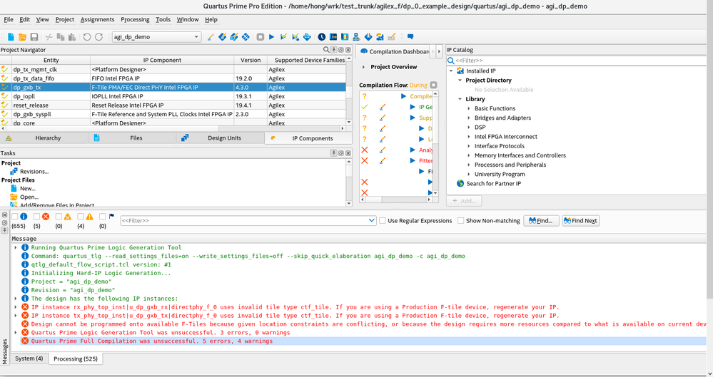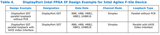 DisplayPort Intel FPGA IP Design Example for Intel Agilex F-tile Device