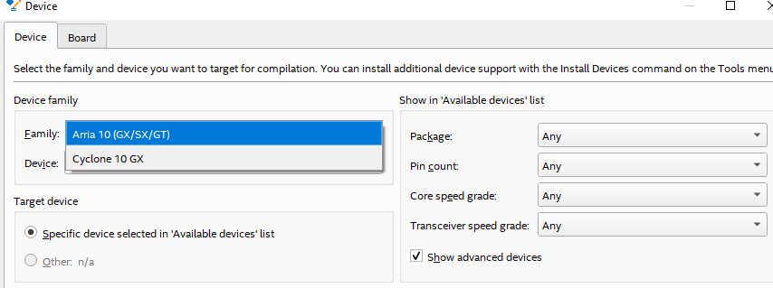 I don't think those are the problems because I could install Quartus 23.4 and Cyclone 10 GX as expected. Compilation is fine too. It's just Arria 10 that is not appearing on the dropdown menu, but it is clearly shown in the snapshot it is installed. The same thing happens in Quartus 23.1.