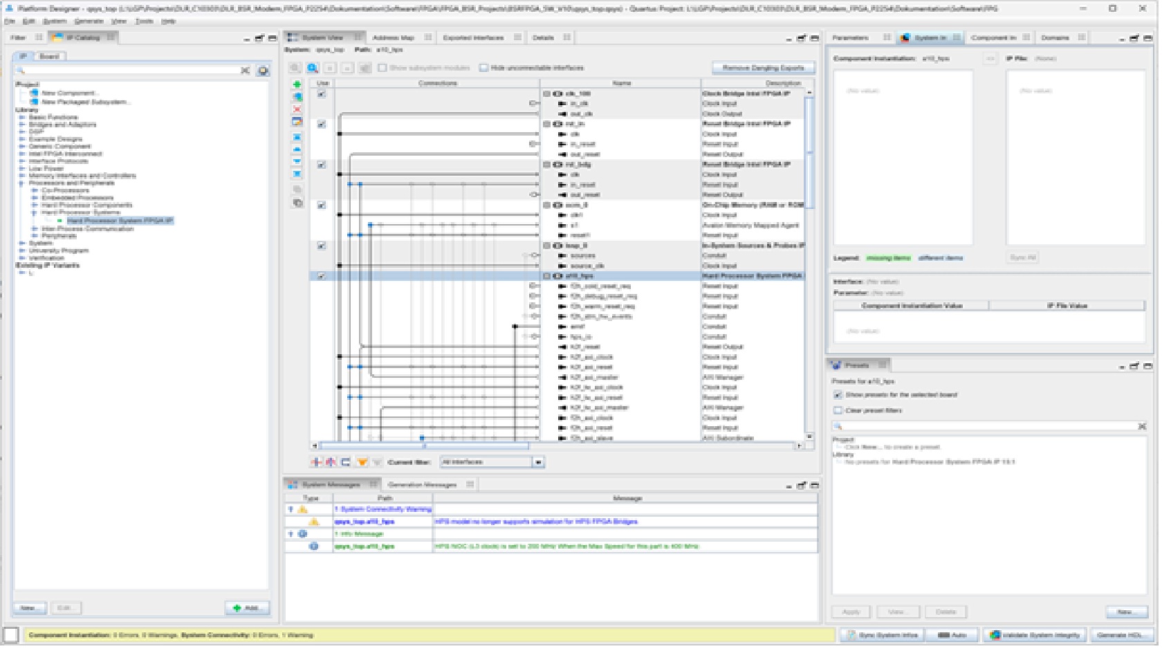 Warning: File path could not be determined for component altera_arria10_hps in C:/Projects/DLR_C10303/DLR_BSR_Modem_FPGA_P2254/Dokumentation/Software/FPGA/FPGA_BSR_Projects/BSRFPGA_SW_V10/qsys_top.qsys. The component is ignored for generation.
