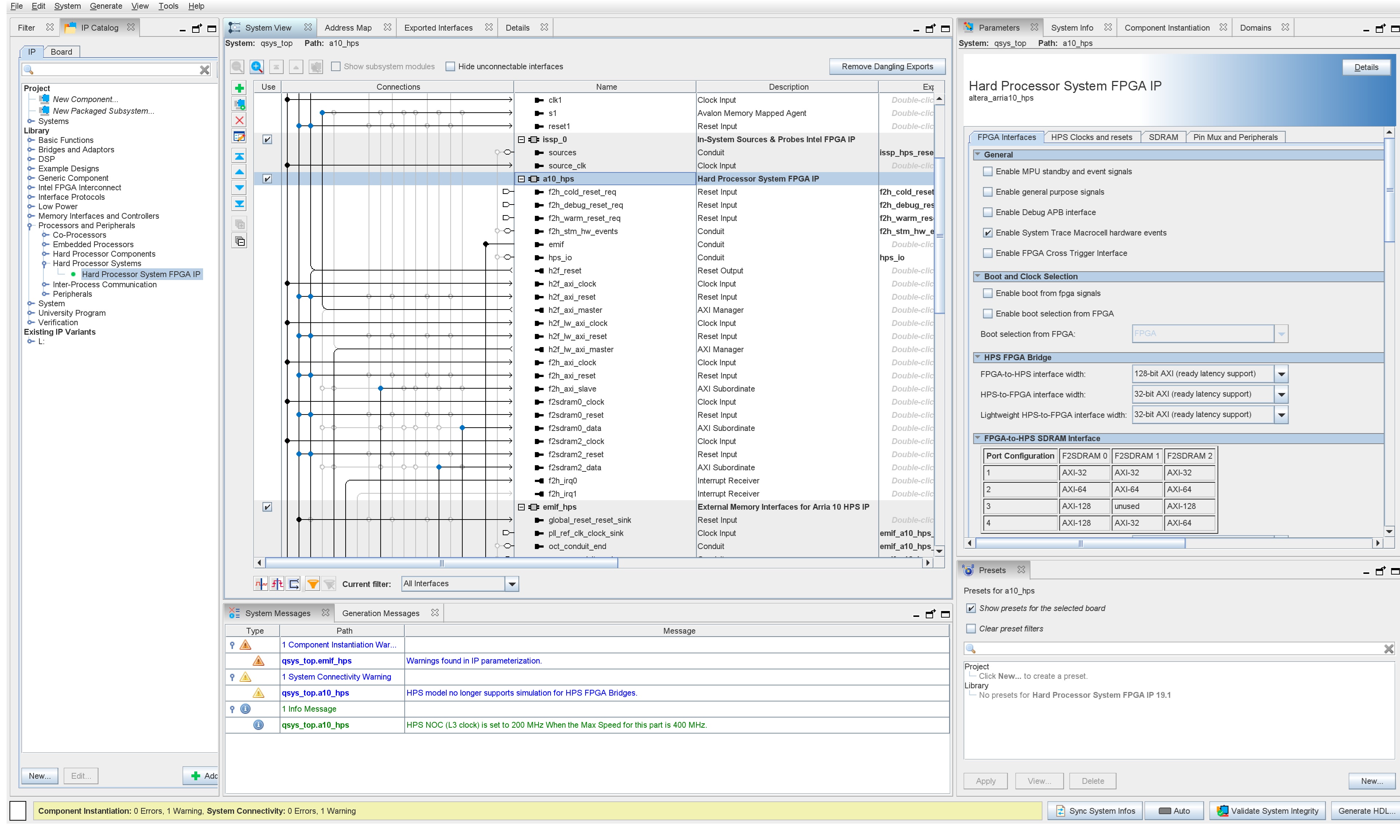 Warning: qsys_top.a10_hps: HPS model no longer supports simulation for HPS FPGA Bridges.