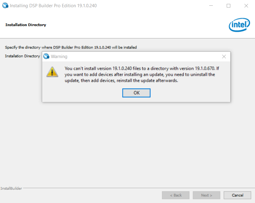 Both intel Quartus 19.1 version and DSP Builder 19.1 version are not compatible with each other