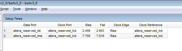 Hi, I'm looking to investigate the setup times for a design I have. However, despite following AN 775 as best I as I can, I am not generating any outputs from my design. Instead all I see are two Data ports which I haven't declared myself in my design...