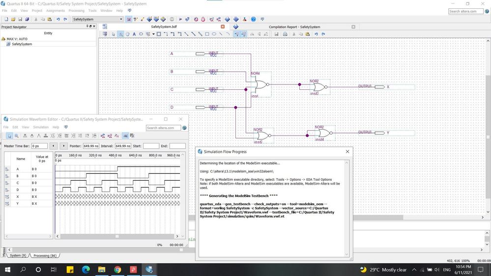 My OS is Windows 8 64 bit. I'm using Quartus II 13.1 Web Edition, and Modelsim 10.1d.